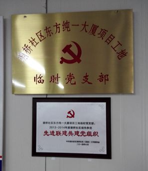 第三工程公司塘桥社区东方纯一大厦项目工地临时党支部,因其在社区共建中发挥的积极作用,被浦东新区塘桥社区(街道)党工委评为塘桥社区2013-2014年度创先争优活动“先进联建共建党组织”。